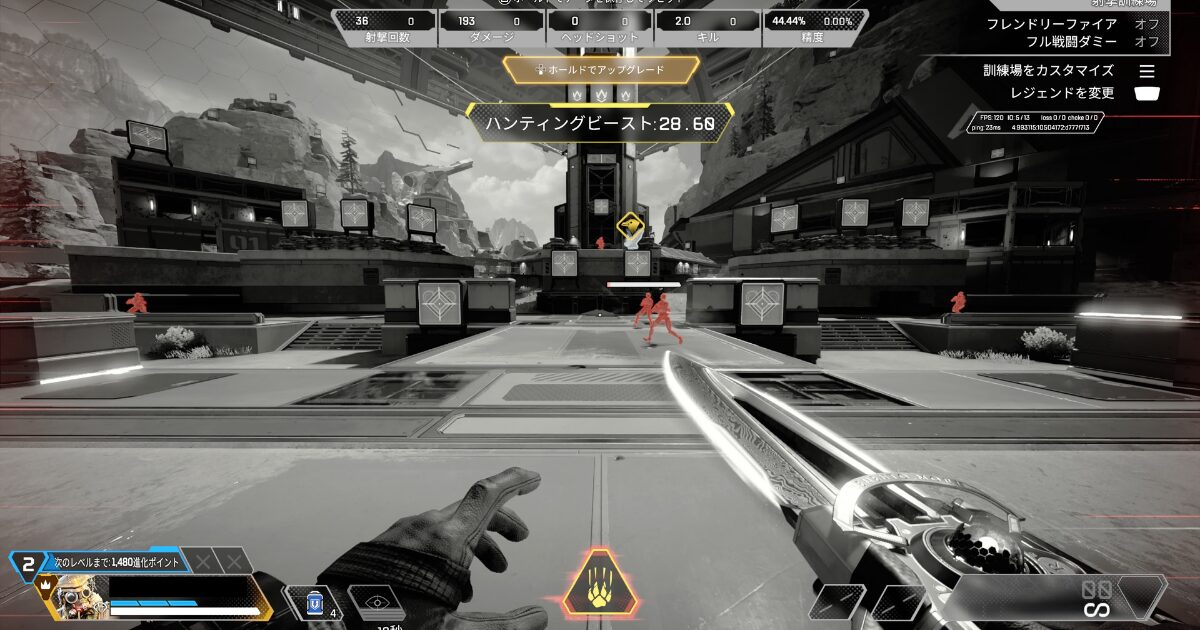 | Lv.3 | サイトハウンド | アルティメット「ハンティングビースト」発動中、戦術アビリティのクールダウンが50%短縮されます。ウルト中の情報量が増えるので、強気に前へ出るときの安心感が大きいです。 |