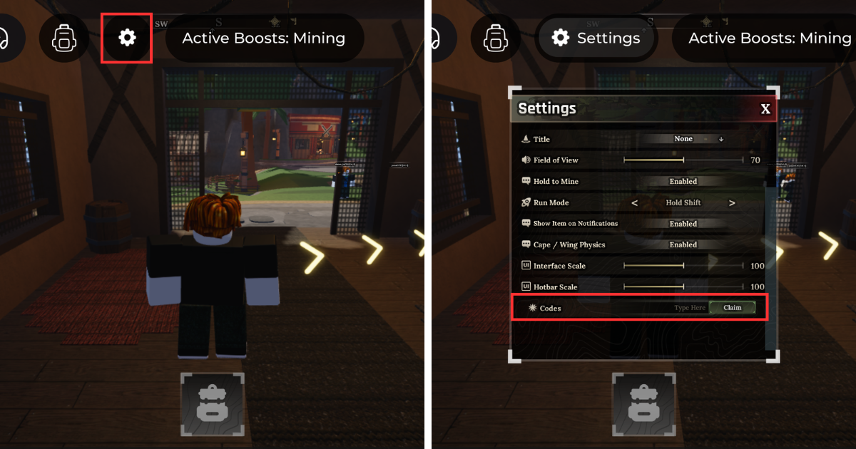 ロブロックスのフォージのコード入力のやり方は下記の通りです。